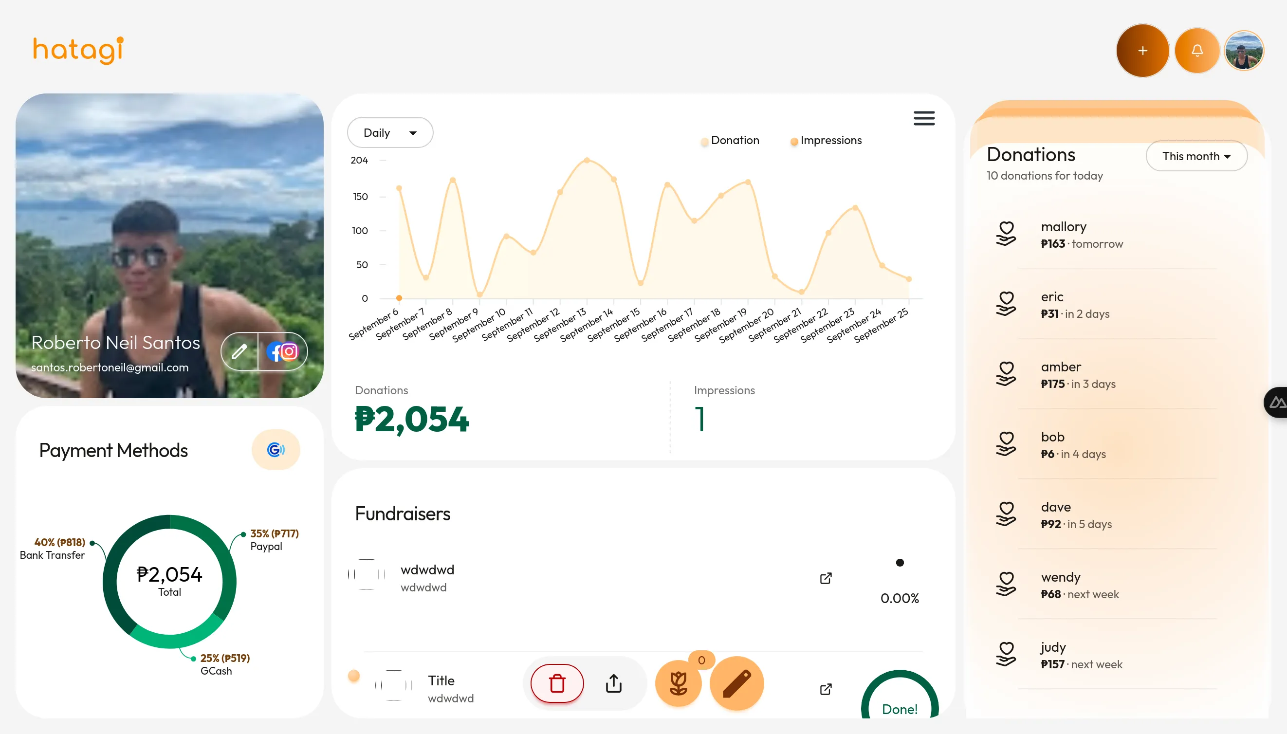 Kumpletong pagsubaybay ng donasyon at kontrol sa iyong fundraiser