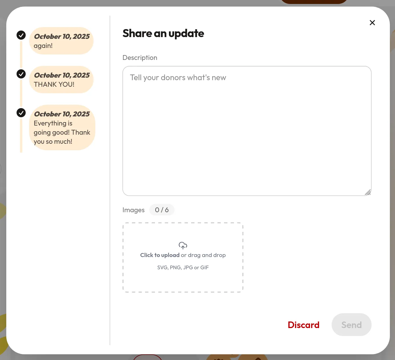 Ibahagi ang mga nangyari, magpadala ng mensahe ng pasasalamat, at panatilihing updated ang iyong mga donors tungkol sa naging epekto ng kanilang kontribusyon.
